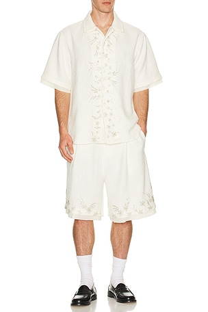 • Ecru Porto Waffle Shorts OAS