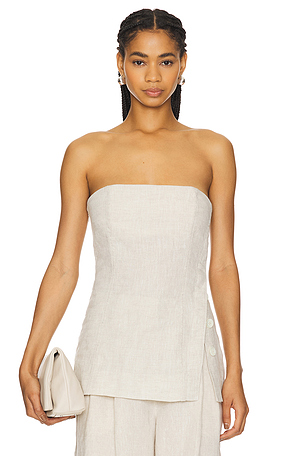 Lenen Strapless Tunic Top en Beige