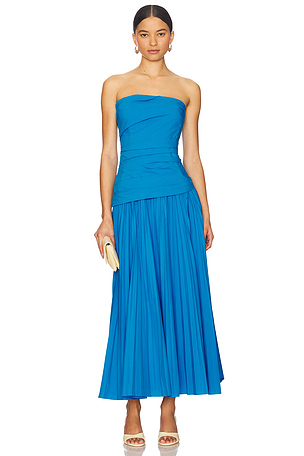 Arie Strapless Bustier Midi Dress en Royal