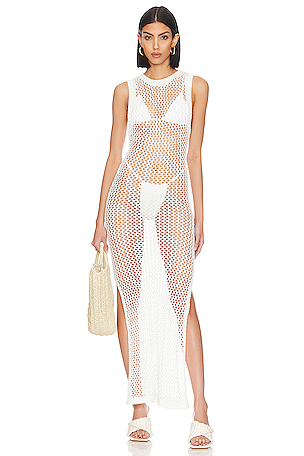 Non doublé. Liens à nouer côtés. Importé. This crochet knit sarong cover up ties at the side and pairs perfectly with the Sao Paulo bikini from Camila Coelho for a complete ensemble COEL WQ28.