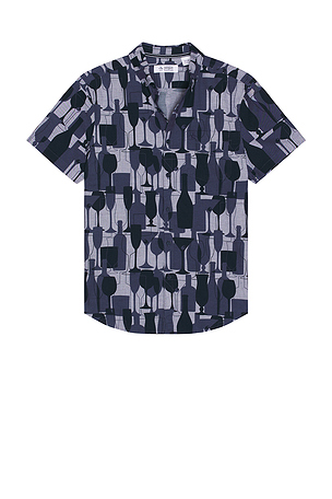 Fermé par boutons. Soft, breathable chambray cotton fabric. Classic collar and short sleeves. Front pocket. Size L, M, S. 67% coton, 30% viscose, 3% élasthanne.