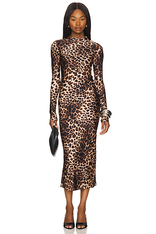 ROBE MI-LONGUE SATen SHenE FUNNEL NECK en Marron