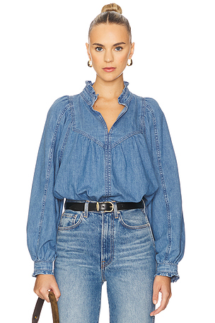 Denim Brunch Babe Blouse en Bleu