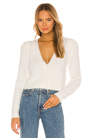 Size L, M. 40% viscose, 35% polyamide, 23% polyester, 2% Lycra. Poche poitrene. Maille côtelée. Favorite Daughter GILET QUen. N en Crème.