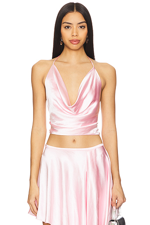 Cet article n'est pas vendu en ensemble. BARD WS418. Lavage à la main à l'eau froide. Halterneck and back tie closures. Bardot HAUT À DOS NU EN SATIN ANDREAMA in Blush. Size 10, 12, 6.