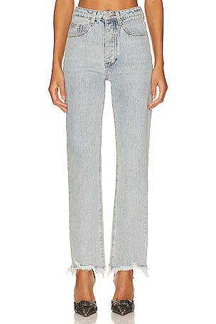 Superdown JEAN MARILYN en Denim Clair. Taille 24. Base brute effilochée. Attention, les franges peuvent être légèrement différentes. Hand wash. Braguette boutonnée.