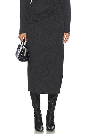 Vence JUPE MIDI DRAPÉE À LA TAILLE en Anthracite