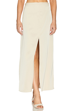 HEAR WQ33. 241r80a. HEARTLOOM JUPE LONGUE SHAYNE in Cream. Size L, M, S. Forme à enfiler avec bande élastique à la taille. Fente côtés.