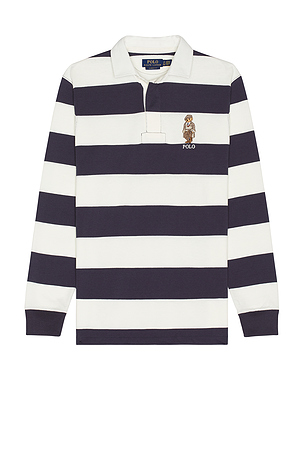 Long Sleeve Novelty Heritage Bear Rugby Polo en Bleu