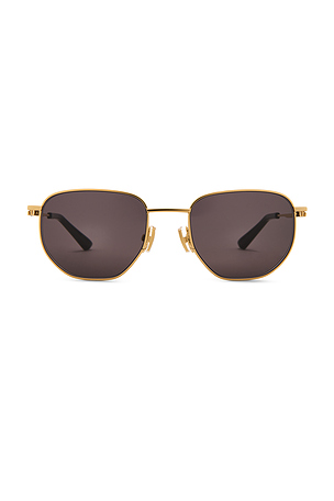 Bottega Veneta LUNETTES DE SOLEIL in Metallic Gold. Le verre mesure environ 52mm. BV1301S 005. Étui rigide et lingette de nettoyage inclus. BOTR WG38.
