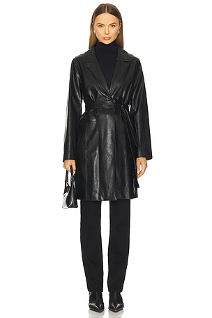 Detachable waistbelt. Side slip pockets. Wore. What MANTEAU VEGAN en Noir. We. Wore.
