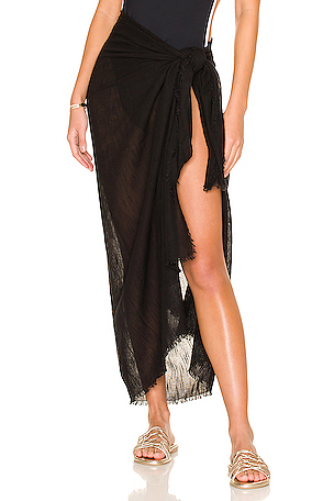 Self tie design. Sarong measures approx 107 cm in length. SEAF WQ47. 71830. Non doublé. Midweight gauze fabric with raw cut hem.