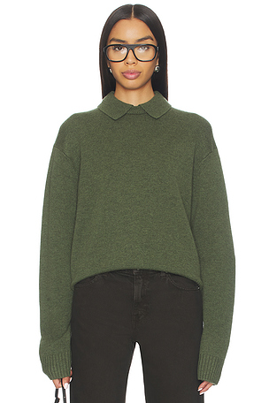 Hand wash. Fenition bord côtes. ISA BOULDER PULL RECFauve. GLE en Dark Vert. AW25MTPSW10A.
