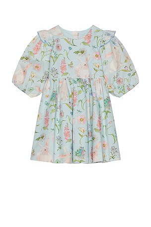 Tissu popeline. PCHI GD11. Pink Chicken ROBE BROOKE in Baby Blue. Size 2, 3. Entièrement doublé. Fermé par boutons au dos.