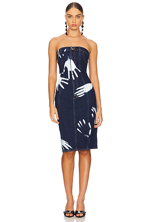 Arie Faux Leather Bustier Midi Dress en Noir,Blanc