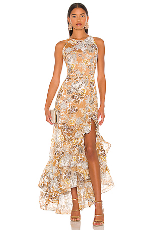 Fermé par glissière dissimulée au dos. Charmeuse fabric with boned bodice, ruched skirt and draped accent. Katie May's Chasing Dawn Gown is a strapless mini dress in a vibrant floral print with a draped overlay. Perfect for your next special event!.