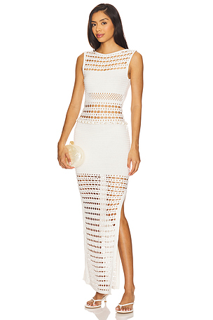 ROBE MIDI EN MAILLE CROCHET ADONI en Blanc