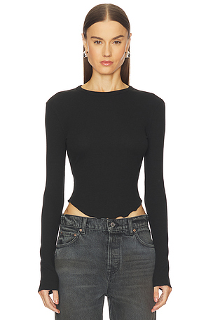 T-SHIRT SCOOP HEM LONG SLEEVE TEE en Noir