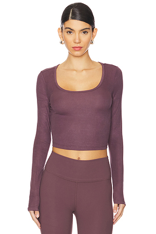 Long Sleeve Cropped Scoop Neck Top en Prune