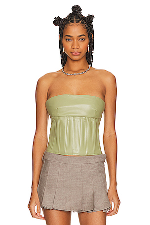 Superdown Odessa Corset Top en Olive. Taille M. Also en L. . Sauge avec armatures. Soft faux leather fabric.