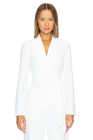Amanda Uprichard VESTE VERA in Black. Size S. Comprend des épaulettes. AMAN WO128. Lavage à sec uniquement. Croisé devant et fermeture par liens intérieurs et extérieurs.
