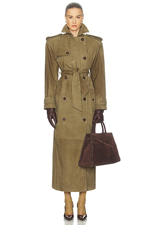MANTEAU SUEDE TRENCH COAT en Vert